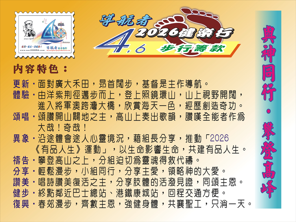 報名方法: 1. 填妥報名表傳真至 2328 6427 或Email到info@nav2000hk.com 2. 或親臨報名: 導航者書室 The Navigator Bookstore Tel.: 3188 4753 九龍藍田廣田村廣田商場1樓107號舖